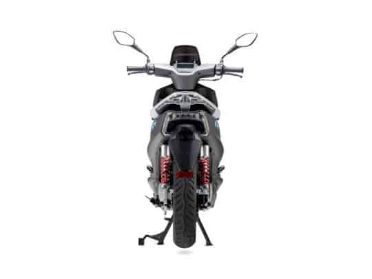 Il Faro anteriore e gli indicatori di direzione full LED si fondono con luci di posizione anteriori a tubi LED; il sistema frenante è a disco e gli pneumatici hanno dimensioni di 110/70-12 all’ anteriore e 130/70-12 al posteriore.