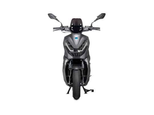 E4 4750W Doppia batteria è uno scooter elettrico elegante ma grintoso, grazie al colore Graphite grey arricchito da tocchi di azzurro elettrico; il design moderno e ricercato si fonde all’elevata cura per i dettagli: una confortevole sella alta 780 mm, lo spazioso vano batteria capace di ospitare anche la batteria aggiuntiva e, per finire, il gancio portaborse e presa USB integrati nello scudo anteriore.