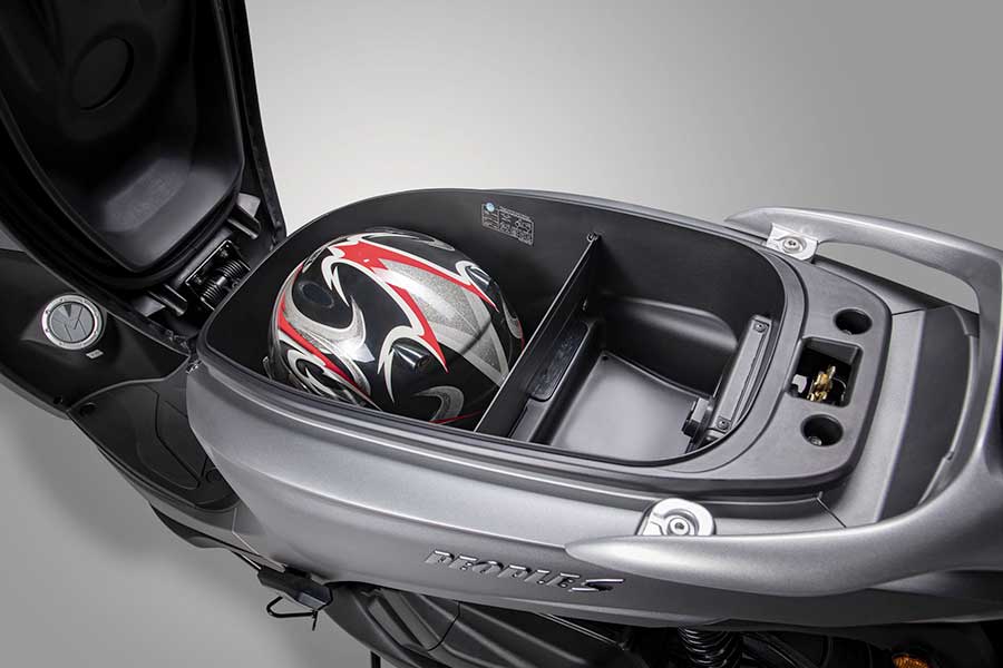 La sella a due piani è alta solo 78 cm da terra ed è comoda ed ergonomica sia per il pilota sia per il passeggero seduto al posteriore; sono ovviamente di serie i must della famiglia People: lo spazioso bauletto da 33 litri in tinta con la carrozzeria, il parabrezza, il paramani e la doppia presa USB presente sia nel collo del copri manubrio sia nell’ampio vano sottosella, la cui apertura è facilmente comandata dal blocchetto multifunzione ed è in grado di ospitare un casco integrale ed eventuali extra, come i guanti.